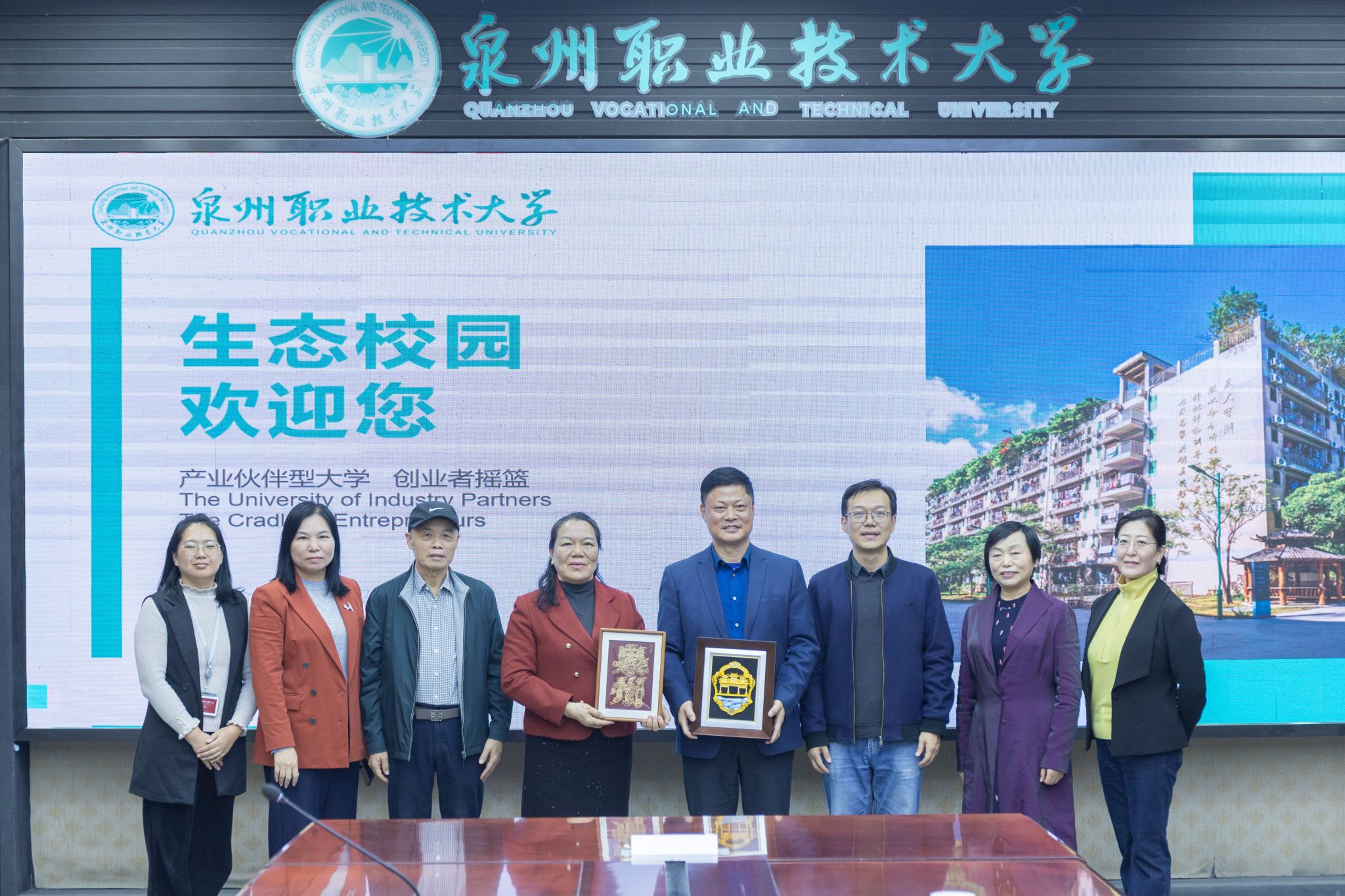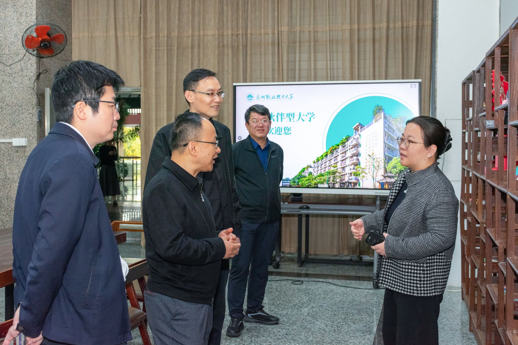 12月11日下午,晋江市西滨镇党委书记黄华君、宣传委员/武装部长庄建良、便民服务中心主任曾海峰,以及福建烯聚新材料科技有限公司运营总监孙晓、泉州凯瑞麟体育用品有限公司总经理邢功立一行莅临我校交流访问。我校党委书记傅志雄、校务顾问吴建生、副校长林文艺陪同参观并出席座谈。来宾一行走访了生态校园沙盘、校史馆、电商直播基地、艺术设计展厅、绿色建筑展厅、数智产教融合展厅、行云新能源汽车产业学院等教学实训场所,...