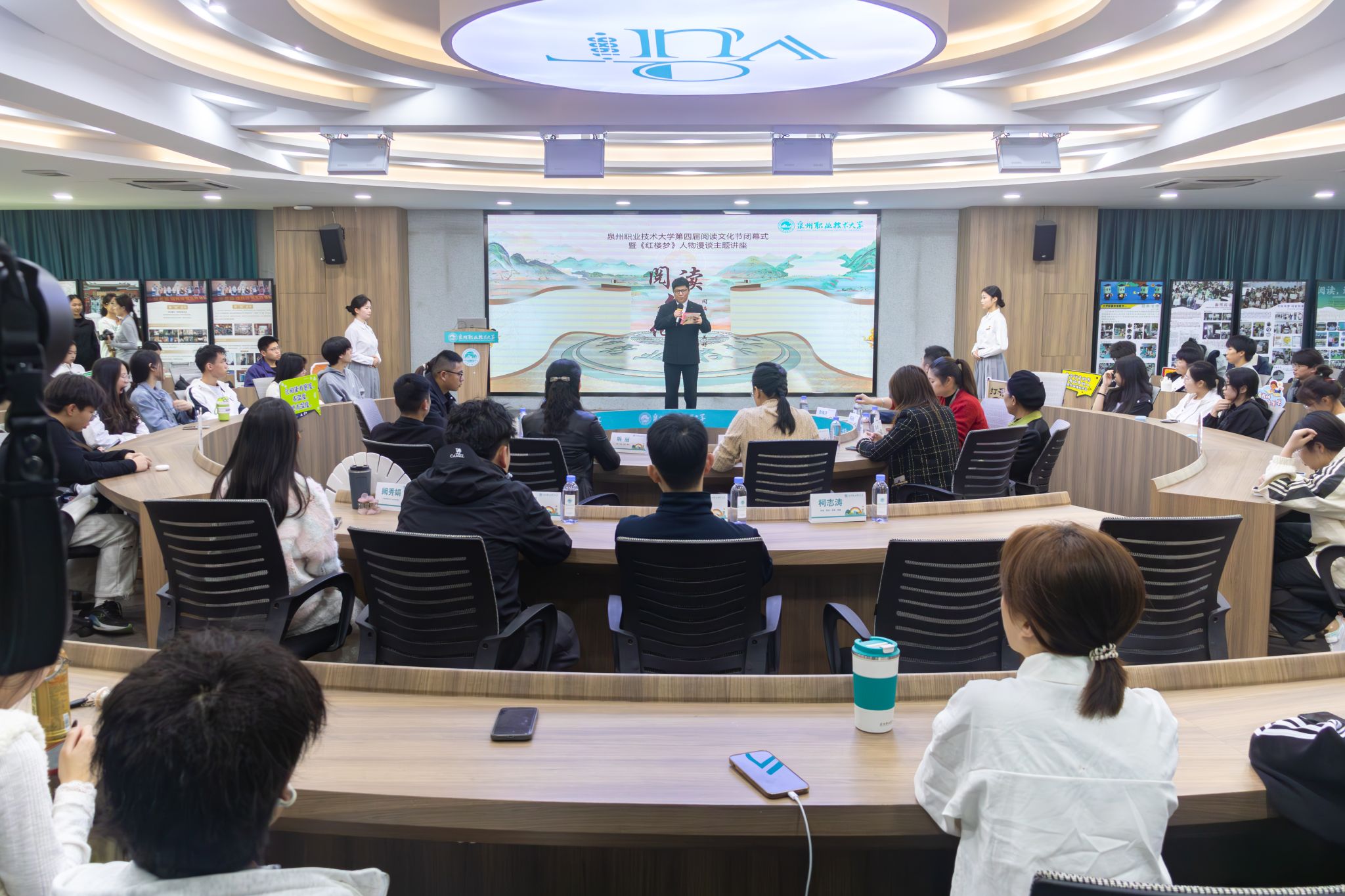 12月10日,泉州职业技术大学举行第四届阅读文化节闭幕式暨《红楼梦》人物漫谈主题讲座。各学院、书院负责人及师生代表齐聚一堂,共同回顾阅读文化节系列活动成果,聆听经典智慧,表彰先进典型。漫谈红楼,于经典中感悟人生活动在教育学院苏萍教授的主题讲座中拉开序幕。苏萍以“《红楼梦》人物漫谈”为题,围绕“读书、识人、审美、明理”四个维度,对林黛玉、薛宝钗、史湘云、王熙凤等人物进行细腻剖析,解读其性格特征与命运...