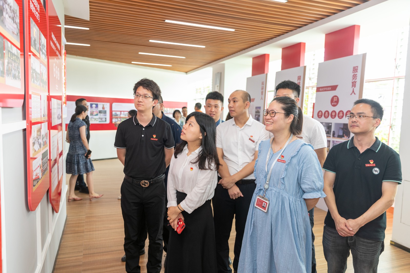 泉州市高教中心办党支部全体党员、学校中层以上党员领导干部、党员师生代表等参加党建馆揭牌仪式,并集体参观党建馆。