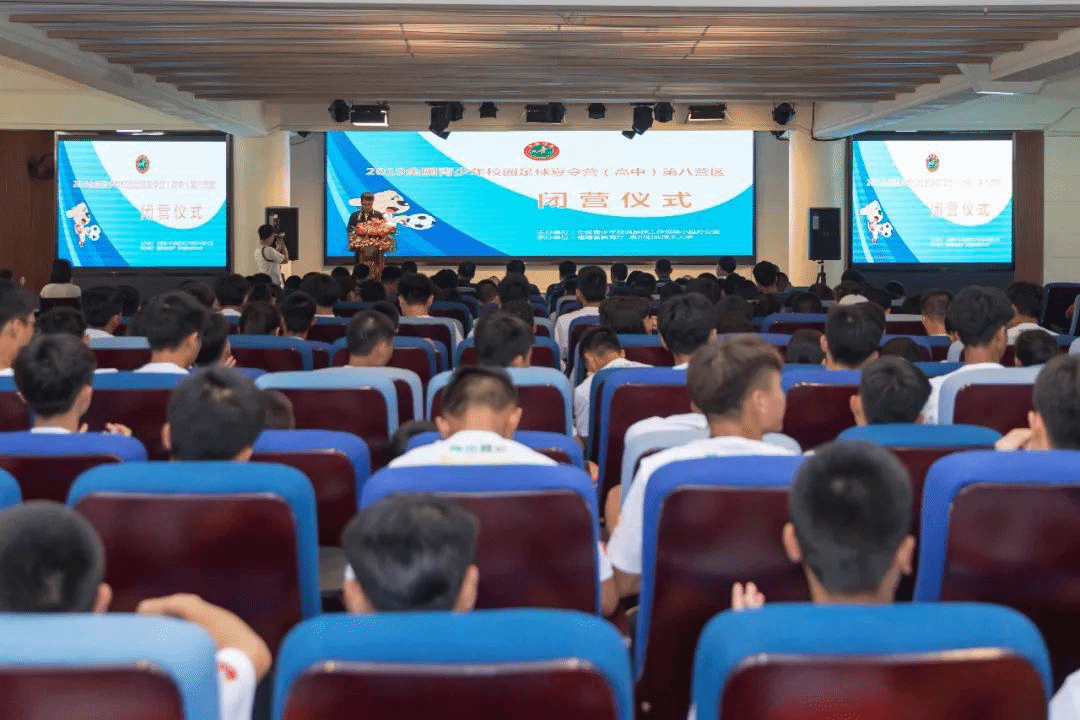 7月27日,由全国青少年校园足球工作领导小组办公室主办,福建省教育厅、泉州职业技术大学承办的2019年全国青少年校园足球夏令营第八营区(高中组)活动顺利闭营。来自福建、江西、广东、海南的16支球队及参加本次夏令营的国内外专家、各参营代表队领队、教练员、裁判员、志愿者和工作人员参加了闭营仪式。