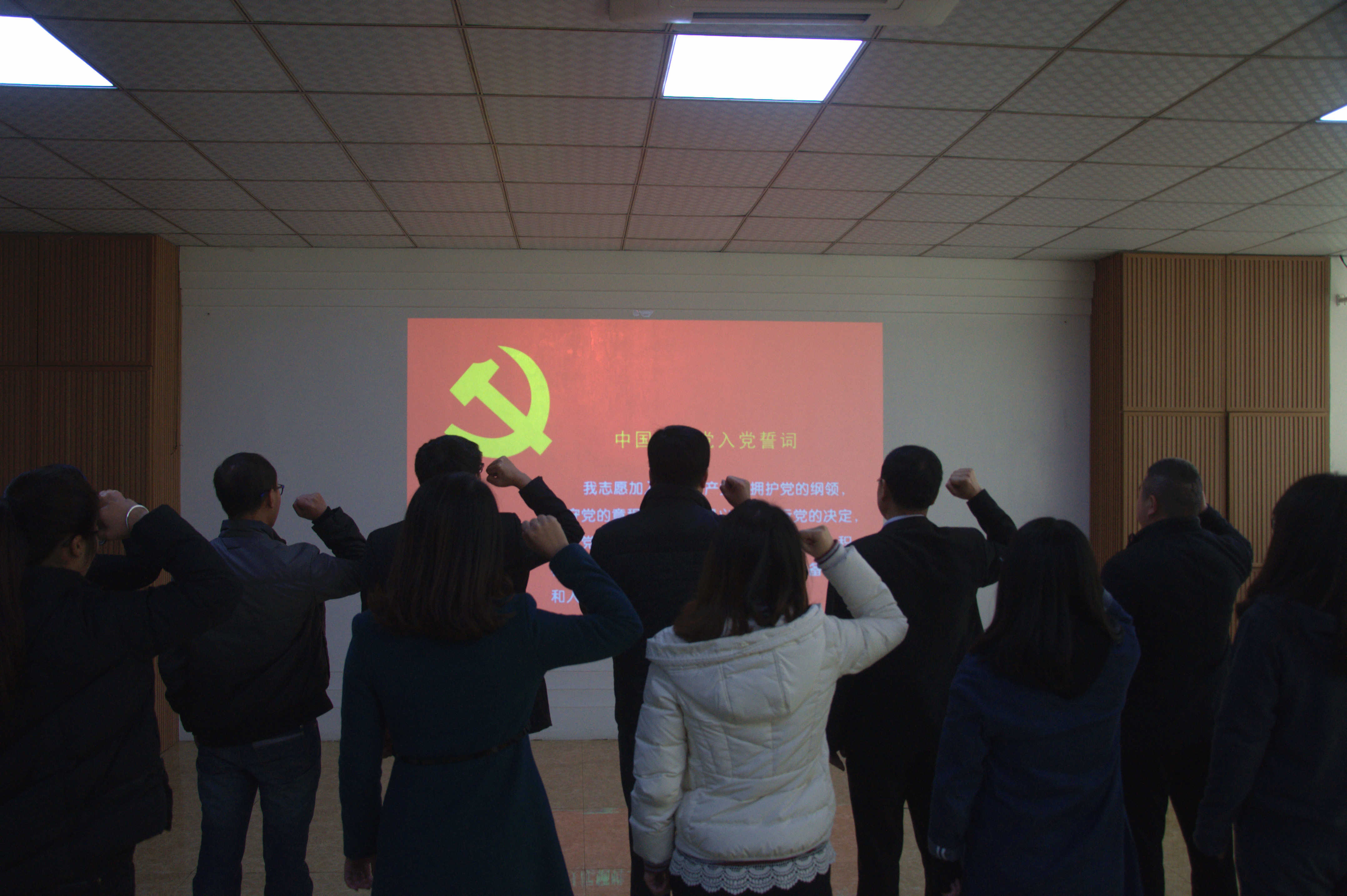 述职会后,学校党委书记林其天同志带领领导班子、各支部书记以及支委一起重温了入党誓词。