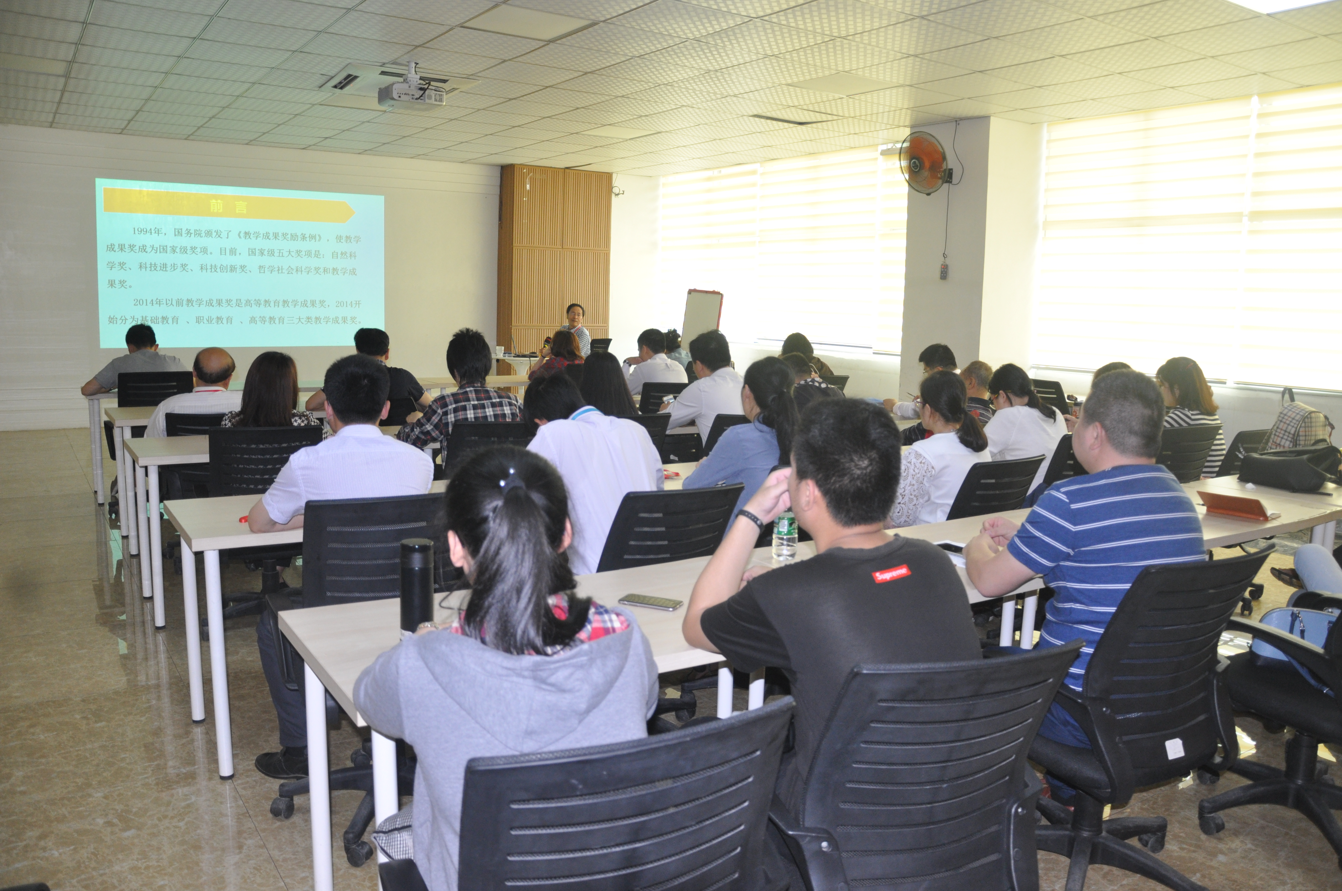 4月26日下午,副校长于雷教授在第二会议室作题为“职业教育教学成果奖培育与申报的实施路径”的学术讲座,教务处、宣传部、人事处,各教学单位负责人,学科带头人等参加。讲座由教务处郑子苹副处长主持。