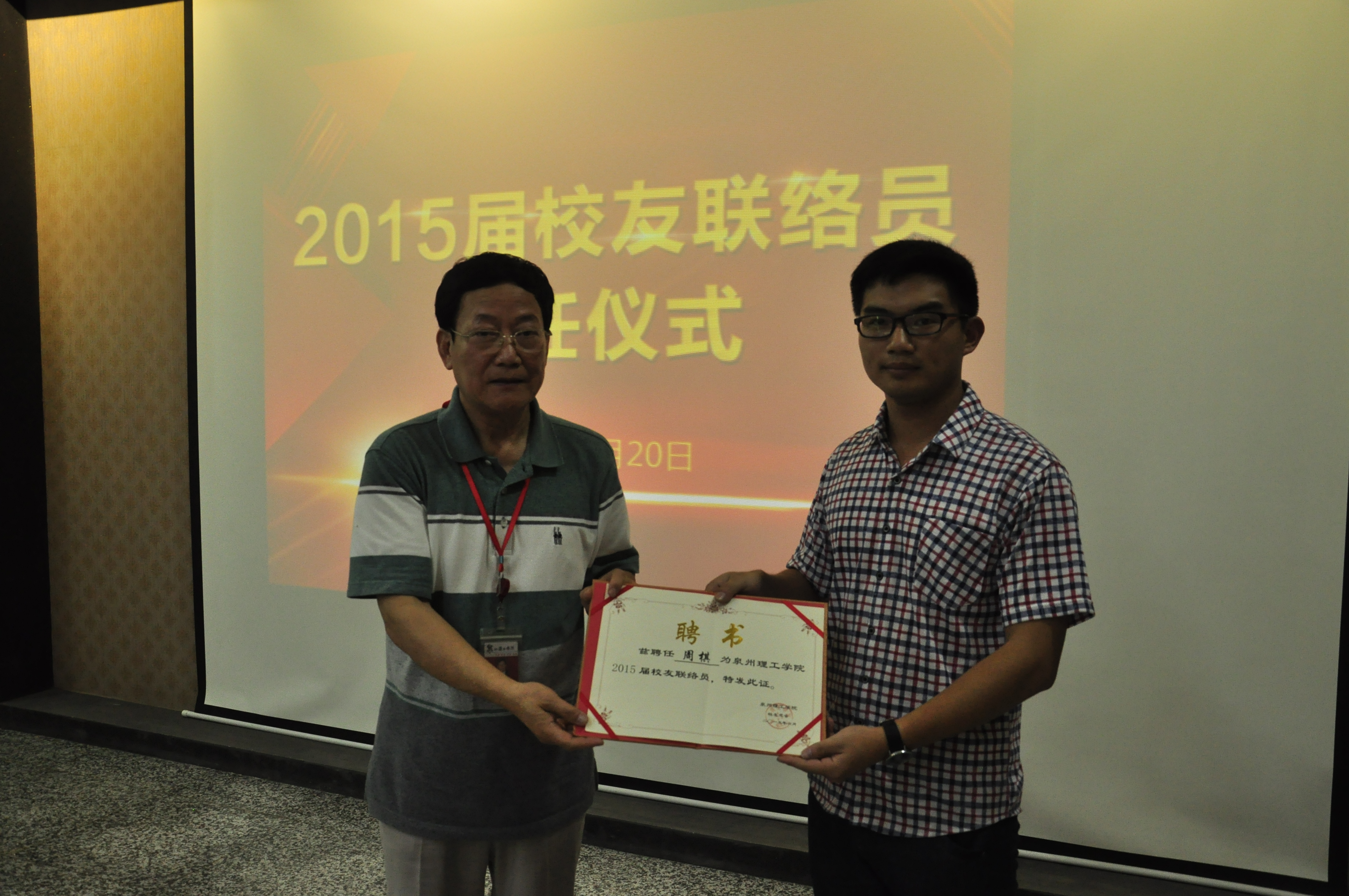 6月20日,泉州理工学院举行2015届校友联络员聘任仪式,38名即将毕业的学生被聘任为校友会联络员。