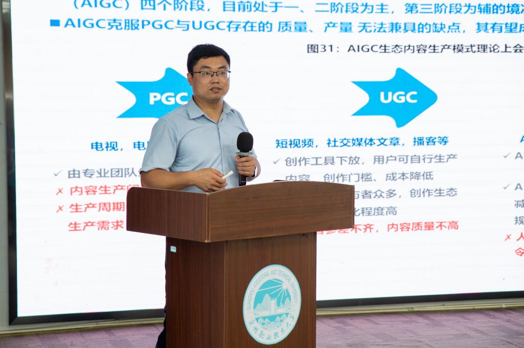▶ 我校举办“人工智能赋能新质生产力发展”主题讲座,联合创新产业学院副院长谢云翔主持活动