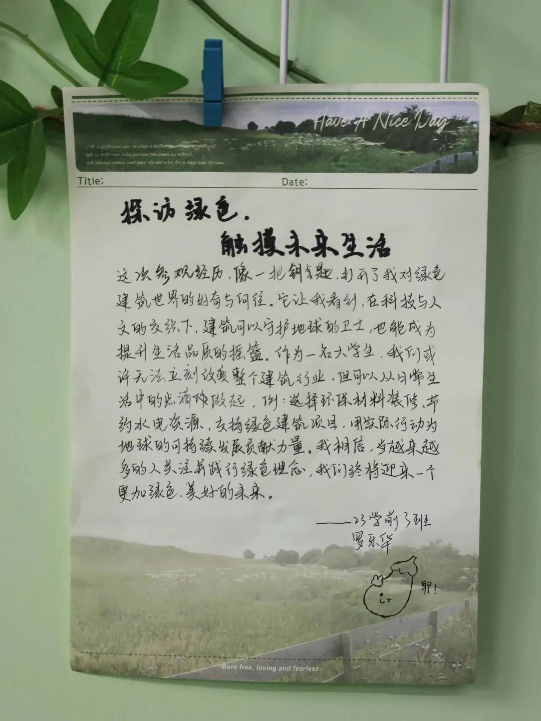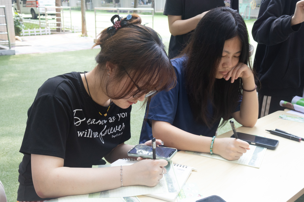 回到书院大厅后,活动进入温馨的“春映漆签”环节。同学们专注地在精美的漆签上挥毫泼墨,将对春天的美好期许、对校园的深厚情感,以及对绿色建筑的理解倾注于笔端。有的同学写道:“我们终将迎来一个更加绿色、美好的未来”;有的同学寄语:“作为泉大的一员,我将以实际行动践行绿色发展理念,为打造更加美好的校园环境贡献青春力量!”……