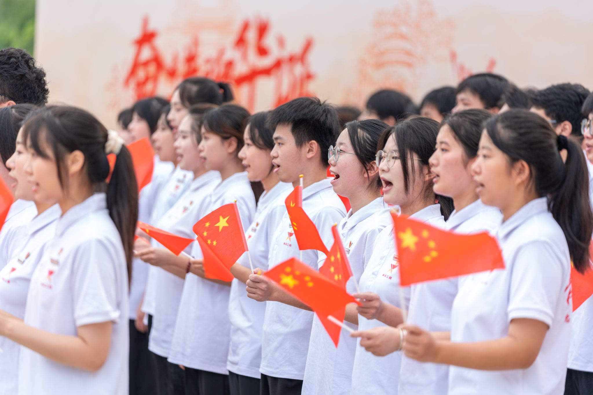 “五星红旗迎风飘扬,胜利歌声多么响亮……”升旗仪式尾声,全体师生齐声高唱《歌唱祖国》,嘹亮的歌声回荡在校园每个角落。师生们挥舞着小国旗,眼中闪烁着激动的光芒,用最真挚的歌声传递对祖国的祝福,用最昂扬的姿态展现泉大青年的活力。