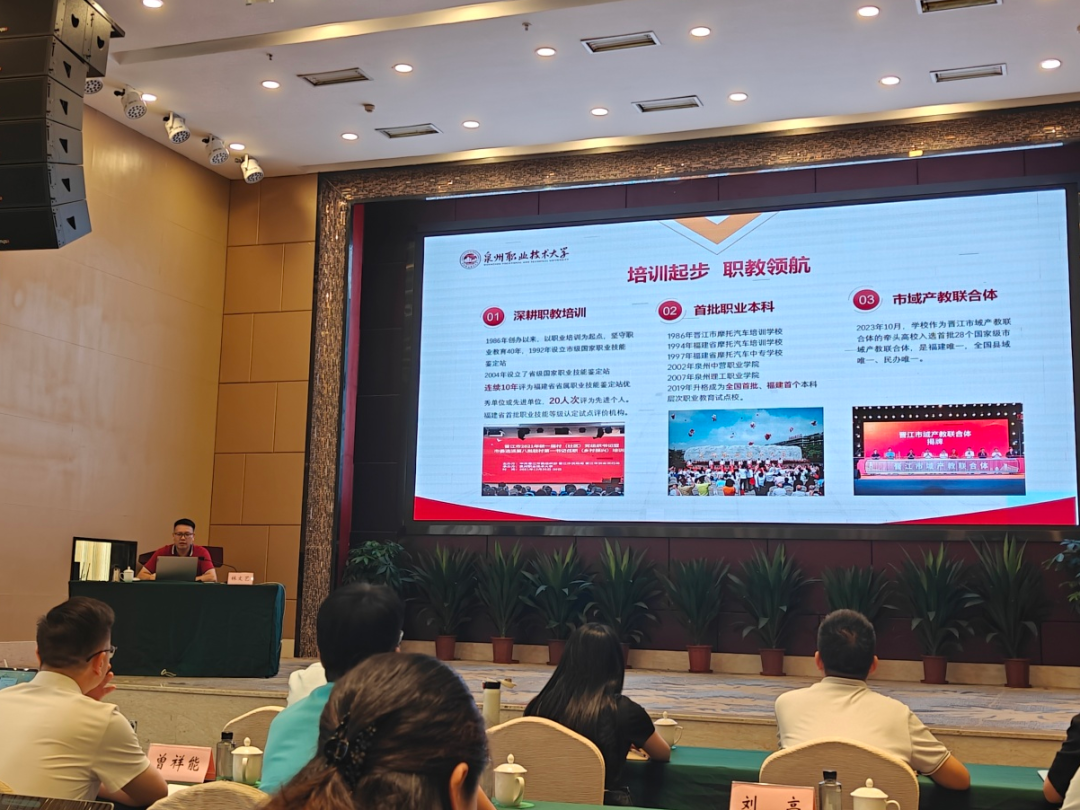 8月4日至7日,由福建省人力资源和社会保障厅主办的“省级高技能人才培训基地负责人能力提升高级研修班”在泉州举办。我校副校长林文艺受邀以《职本赋能,构建“政校行企社”五位一体社会服务新生态》为题作报告,系统分享了学校在产教融合与服务地方经济发展实践中的创新探索及成效。