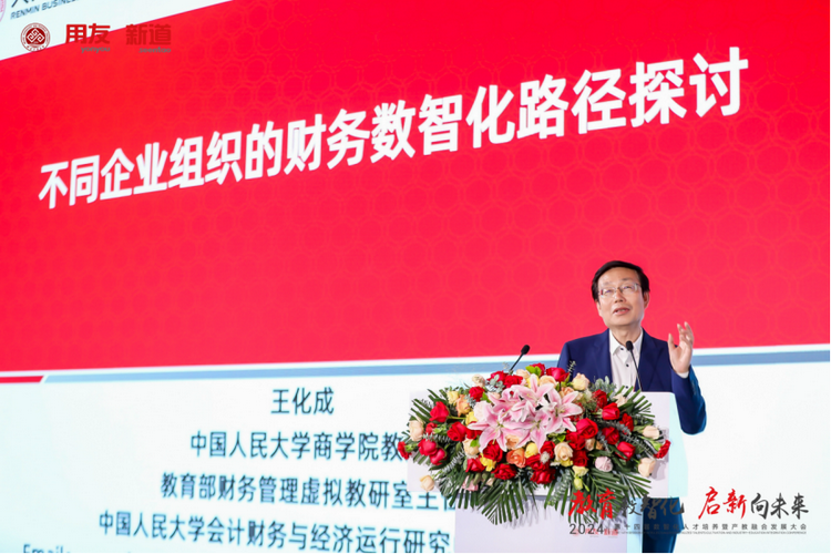 用友网络科技股份有限公司董事长兼CEO王文京聚焦“成就数智企业”作主旨报告。他表示,企业数智化转型是企业应用新一代信息技术,在业务、管理和工作方式中,全面推进数字化、智能化创新与变革,重塑企业,赢得新发展的过程。王文京介绍,数智企业是企业新范式,数智企业具有快速响应客户、生态协同共荣、员工主动作为、实时感知、数据驱动、智能运营六方面特性。目前,用友已发展到第三个阶段,服务千万客户企业数智化,致力于成为企业数智化软件服务的全球领先商。王文京在演讲中介绍了用友BIP3业务敏捷、精益管理、全球运营的三大核心价值,分享了用友服务飞鹤、厦门钨业、比亚迪汽车、中国移动等多个企业进行数智化转型的案例和成果。他提到,在服务教育事业方面,用友通过子公司新道科技与院校进行课程建设、实践条件建设、专业建设、产业学院建设、产教城特色建设等多个纬度合作。同时,用友及新道科技也在探索助力AI+教学新模式,把AI技术结合到教育教学产品中,把智能化更多带给院校和科研机构。
