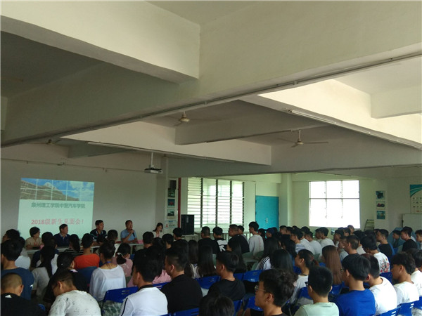 根据2018级新生《大学生活导论》的安排,中营汽车学院在438报告厅举行2018级新生见面会以及专业介绍会,新生见面会有中营汽车学院陈其生院长主持,出席见面会的还有:泉州理工学院副校长庄文瑞、中营汽车学院书记副院长欧阳春风、喻子建教授、王宝霞教授、思政辅导员刘东毅、各班级班主任以及当天早上没课上课任务的老师,以及2018级139位新生们。