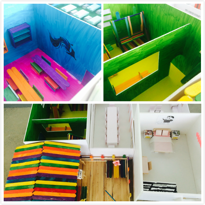 《展示设计》课程由我系广告专业雷典典老师指导完成。通过一学期的学习,广告专业的同学们收获颇丰,不仅设计思维更加成熟,动手制作能力也大大提高。同学们将电脑绘制的模型以等比例还原至实物模型,细致设计了室内布置,丰富色彩搭配,最终制作出漂亮的迷你作品。作品展上几十个模型,小巧精美,浪漫可爱,可谓是给大家带来了一场视觉盛宴。